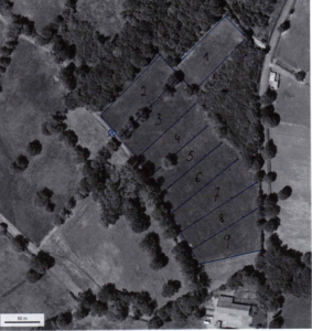La parcelle « 388 » située derrière les écuries va être divisée en 9 cellules de pâturage de surface équivalente, toutes bordées de zones ombragées. L’abreuvement pourra être facilement réalisé grâce à une piste jouxtant la parcelle. Le lot de pâturage sera composé de 5 poneys d’élevage (juments suitées, étalon et poulains). Le temps de séjour sur chaque cellule sera de 5 jours, avec un temps de retour de 40 jours. Ce prévisionnel sera bien entendu ajusté par Manou & Simon selon la météo, la pousse de l’herbe, l’état des animaux,…